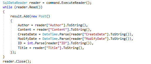 以上两个解释的核心点都在于“面向对象”、“不同类型系统”、“数据转换”,对于使用ASP.NET MVC开发的应用程序来说,开发语言C#就是一个面向对象编程语言,定义的实体类Post就是一个失血模型(只有属性没有方法)对象。而数据库系统与博客系统是两个不同的系统,对于数据库系统来说它将数据看成由数字或字符串构成的一张张表格,而面向对象语言所开发的程序将数据看作一个个实例,表格数据和实例数据是不兼容的,所以需要转换,如之前的代码:
