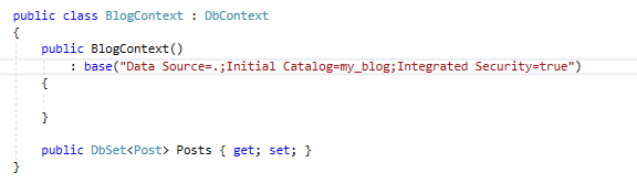4. 通过构造方法给DbContext指定数据库连接字符串: