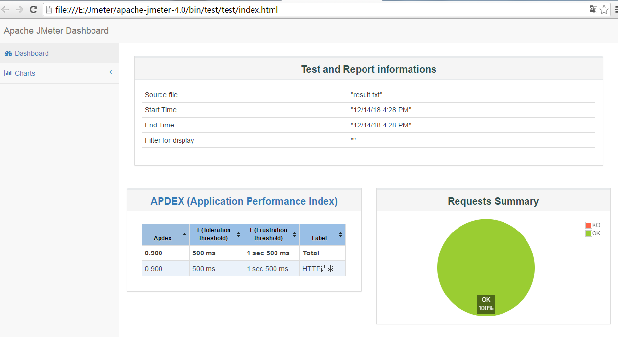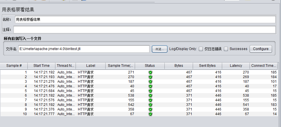 上述的命令有要求测试结果保存到Jmeter bin目录中,如果需要可以在GUI模式下查看测试报告。