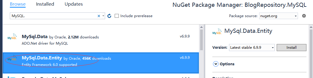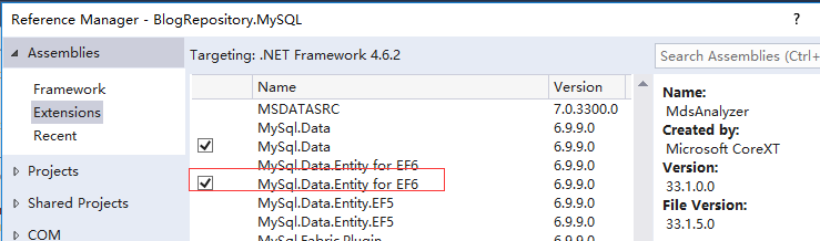 2. 在BlogRepository.MySQL项目中引入MySql.Data.Entity.EF6: