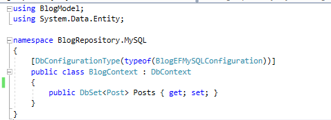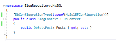 2. 在DBContext类型上使用MySqlEFConfiguration类型: