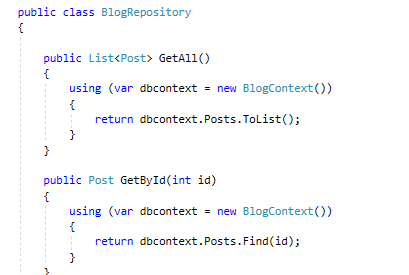 3. 修改BlogRepository,将使用SQL改为使用EF: