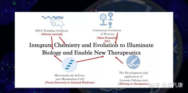 以下是我对David Liu工作的汇总,我从四个方向对其研究工作进行了总结,包括:DNA-Template Synthesis、Continuous Evolution of Proteins、Macromolecule delivery into Mammalian Cells和The Development and application of Genome Editing tools。