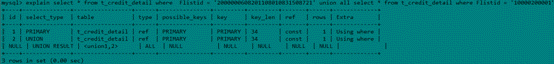 可以用下面这样的查询代替上面的 or 查询: 高效:select from t_credit_detail where Flistid = '2000000608201108010831508721' union all select from t_credit_detail where Flistid = '10000200001';