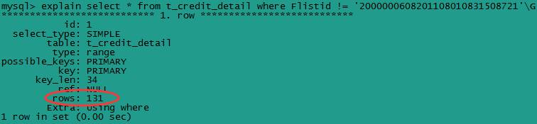 select * from t_credit_detail where Flistid != '2000000608201108010831508721'\G