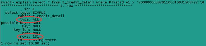 select * from t_credit_detail where Flistid +1 > '2000000608201108010831508722'\G