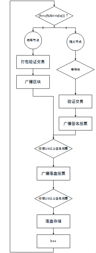 - 落盘投票:所有节点在收到2/3以上节点的签名投票之后,广播落盘投票。