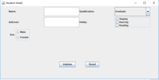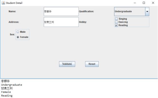 (2)用户点击重置按钮后,清空用户已输入信息;
