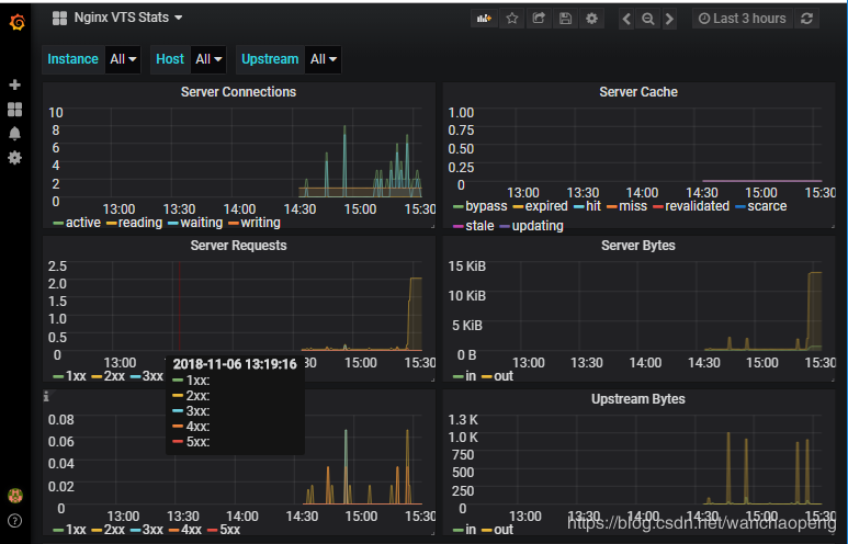 导入nginx vts模板 根据采集源的不同,选用不同的 grafana dashboard 模板