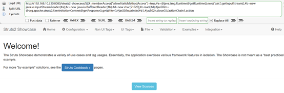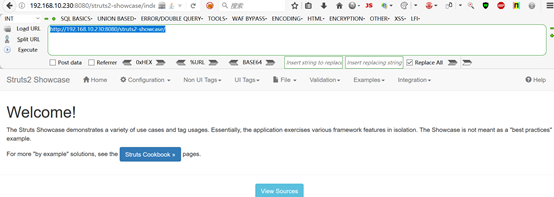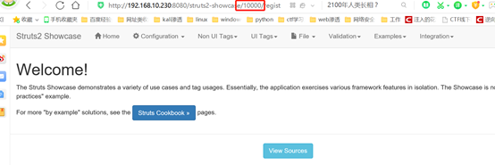 6、浏览器访问http://192.168.10.230:8080/struts2-showcase/,漏洞环境成功搭建