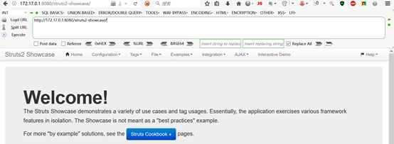 2、 启动环境后,访问http://172.17.0.1:8080/struts2-showcase/