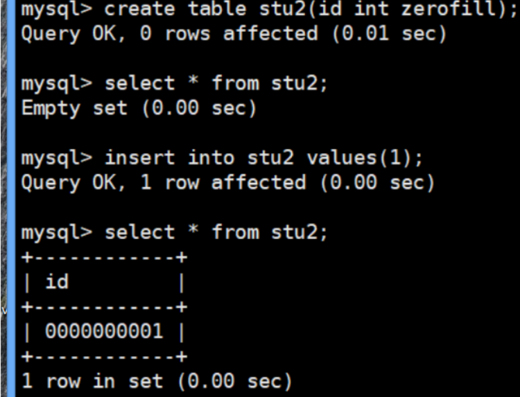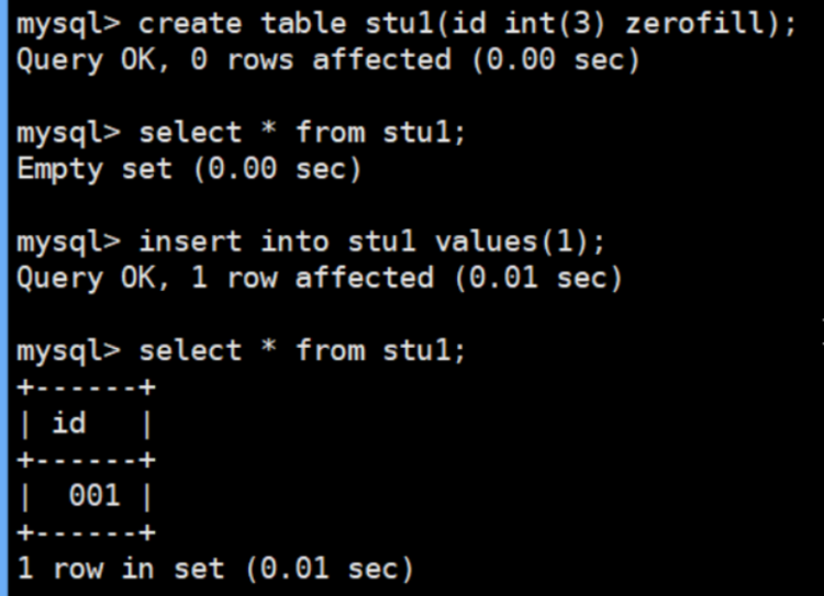 添加zerofill参数 前面给的int(3) 意思是占三位 不够自动补全
