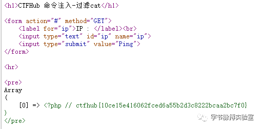 很明显,这里过滤掉了cat关键字。这时候有如下几总方式可以替换cat