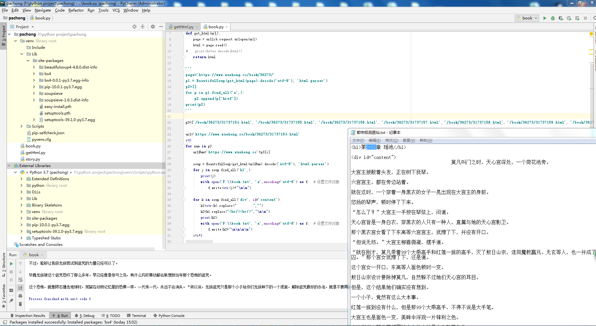 bs4要装一下,pip install BeautifulSoup4