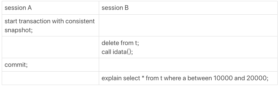 select * from t force index(a) where a between 10000 and 20000;/*Q2*/