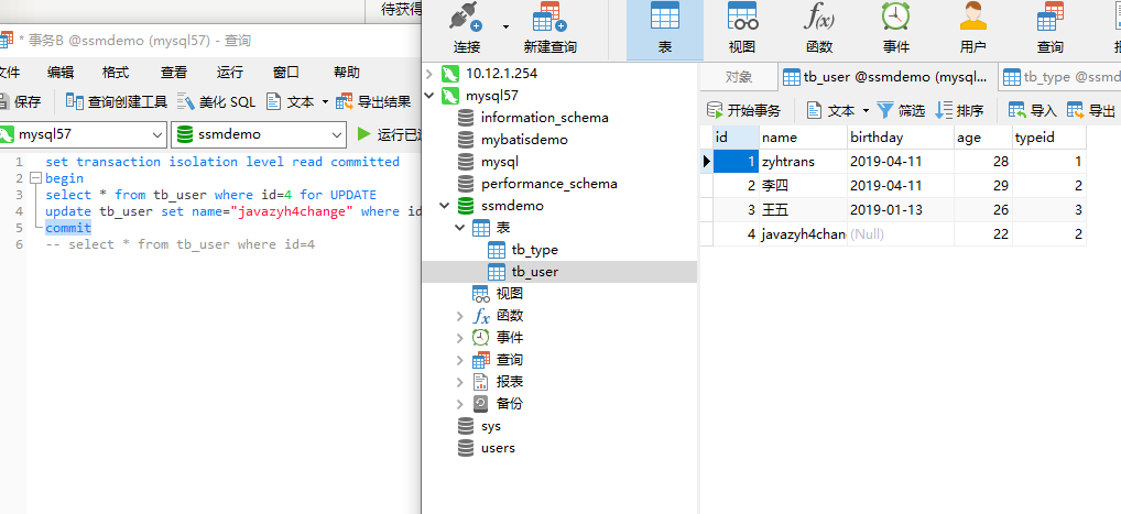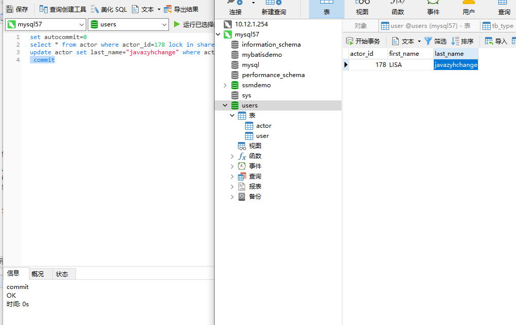 最后SessionA进行commit提交就会发现数据库已经成功修改了