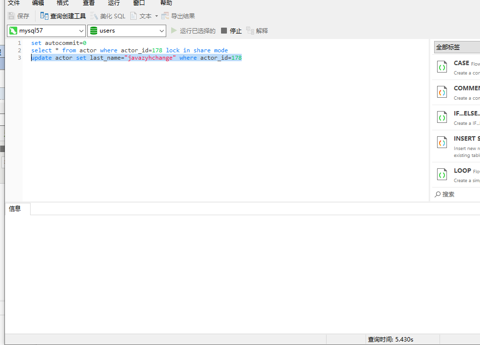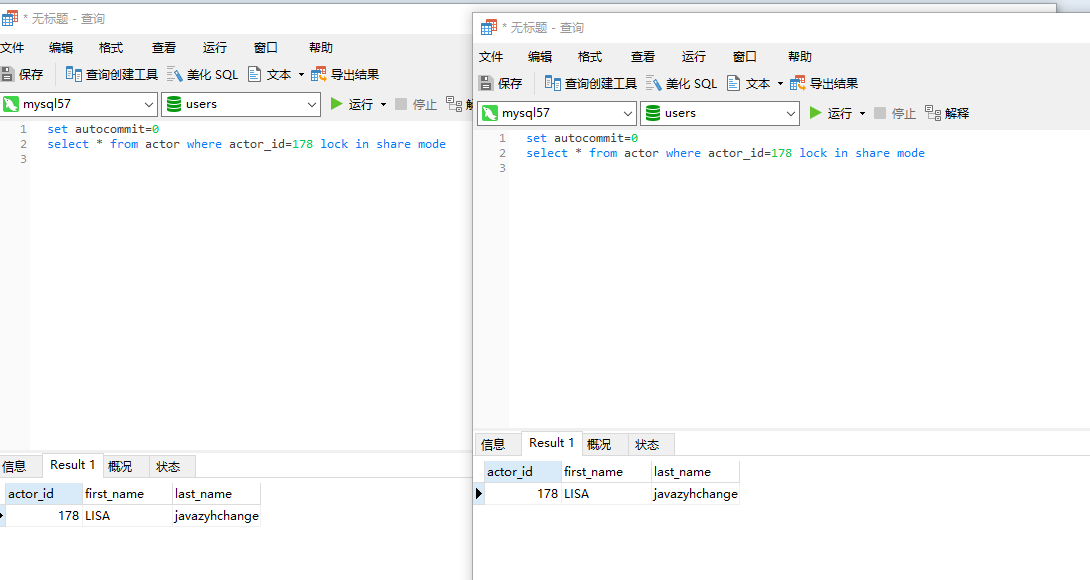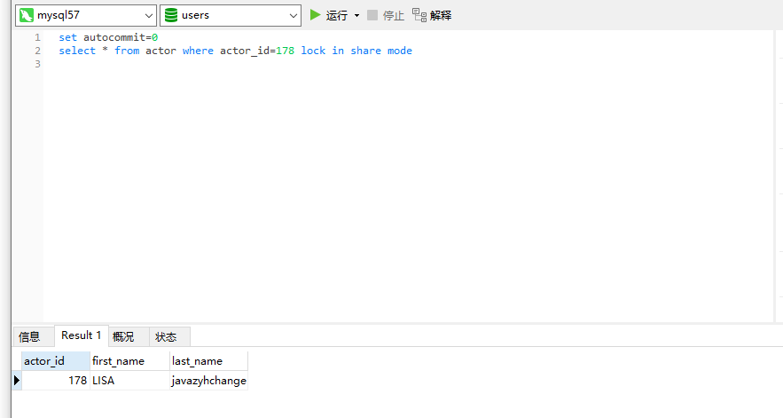 首先对sessionA添加lock in share mod,