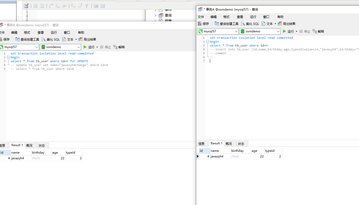 开启了事务A事务B,事务B对数据行加了排他锁,事务A可以查询出数据。