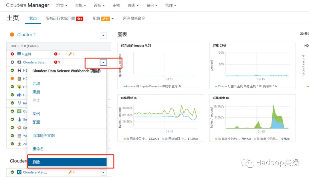 2.卸载CDSW和之前卸载CDH集群类似,删除Parcel包,,删除CDSW组件,删除集群内的服务器。然后删除CDSW的数据目录就可以了。