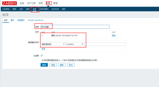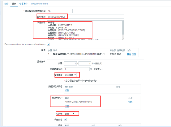 5、为需要钉钉告警的触发器创建新的动作