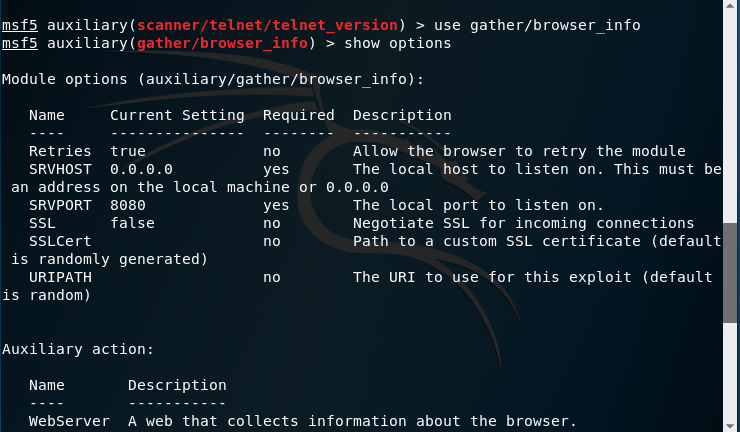 输入show options命令,发现该模块是通过访问网站来搜集浏览器信息
