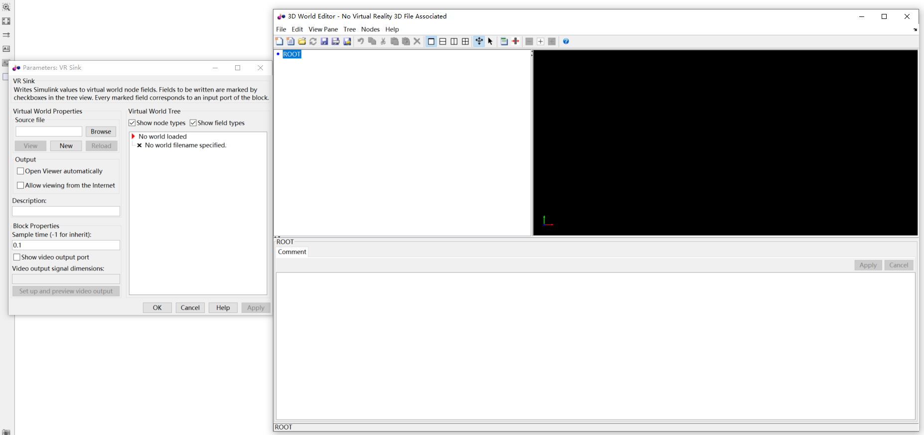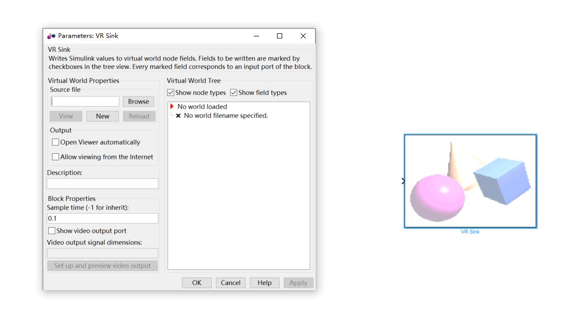 弹球仿真属于比较简单的模型,这里我们只需要使用一个VR Sink模块。创建VR Sink模块后,打开它会出现如下对话框,点击New创建我们的模型,或者是Browse读取已有的模型。