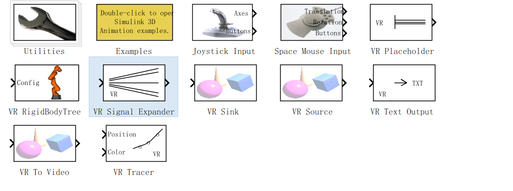 这里我们主要需要使用Simulink® 3D Animation™工具箱中的各种模块。