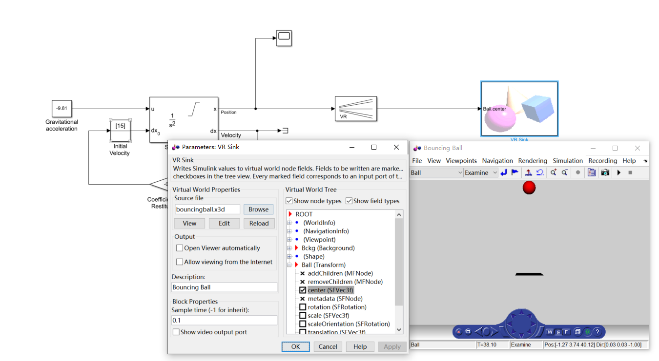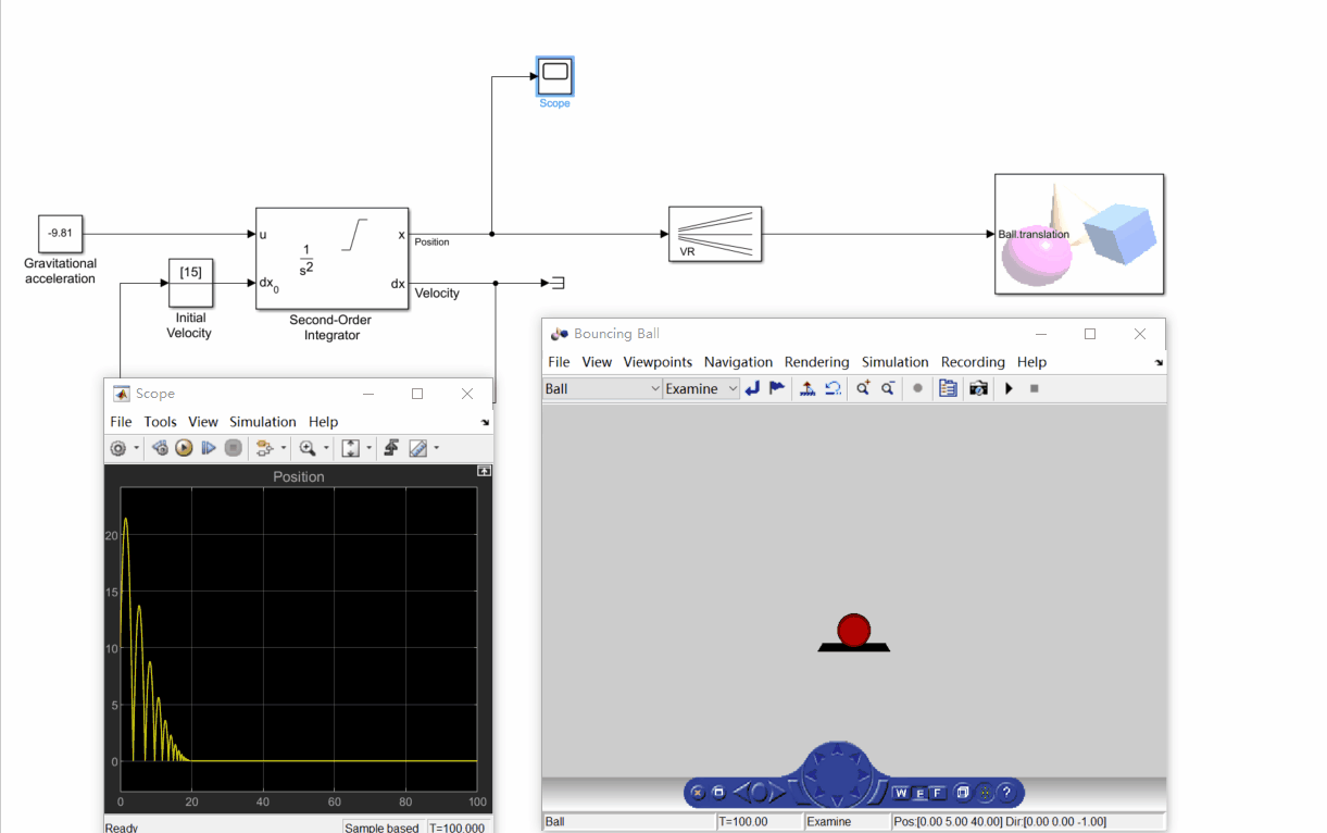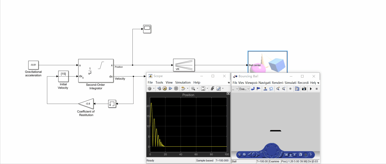 可以看到小球总是穿过了地面一半,猜测是因为初始位置未考虑到小球本身的直径,因此这里把初始位置提高3,再次进行仿真: