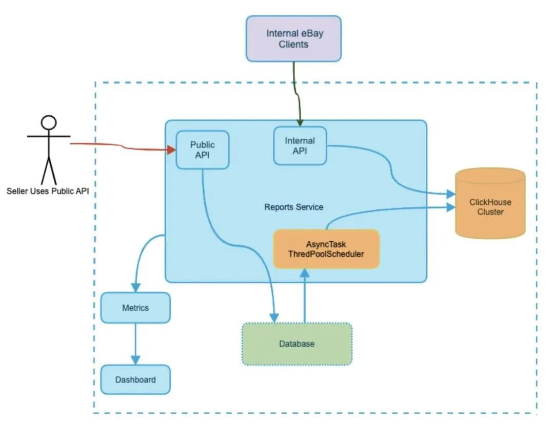 Ebay Seller Hub通过Reports Service接入ClickHouse查询,Reports Service提供了Public和Internal两套API。Internal API提供给Seller Hub以及其他内部的已知应用使用,Public API在eBay Developers Program(详情见:https://developer.ebay.com/)开放给第三方开发者。