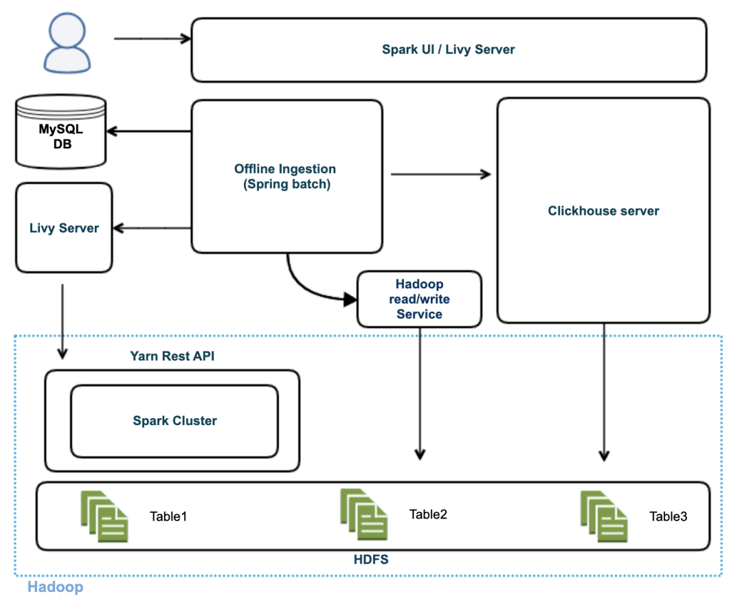 在子任务中的所有Spark Job完成后,离线数据更新系统会调用基础架构团队提供的数据替换接口,发起数据替换请求。服务端按照定义好的分区,将数据从Hadoop直接写入ClickHouse,如图3所示。