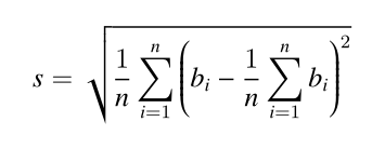 标准差的介绍:标准差是多个数与它们平均数差值的平方平均数,一般用于刻画这些数之间的“偏差有多大”。形式化地说,设第 i 个人付的钱为 bi 元,那么标准差为 : [参见p1.png]