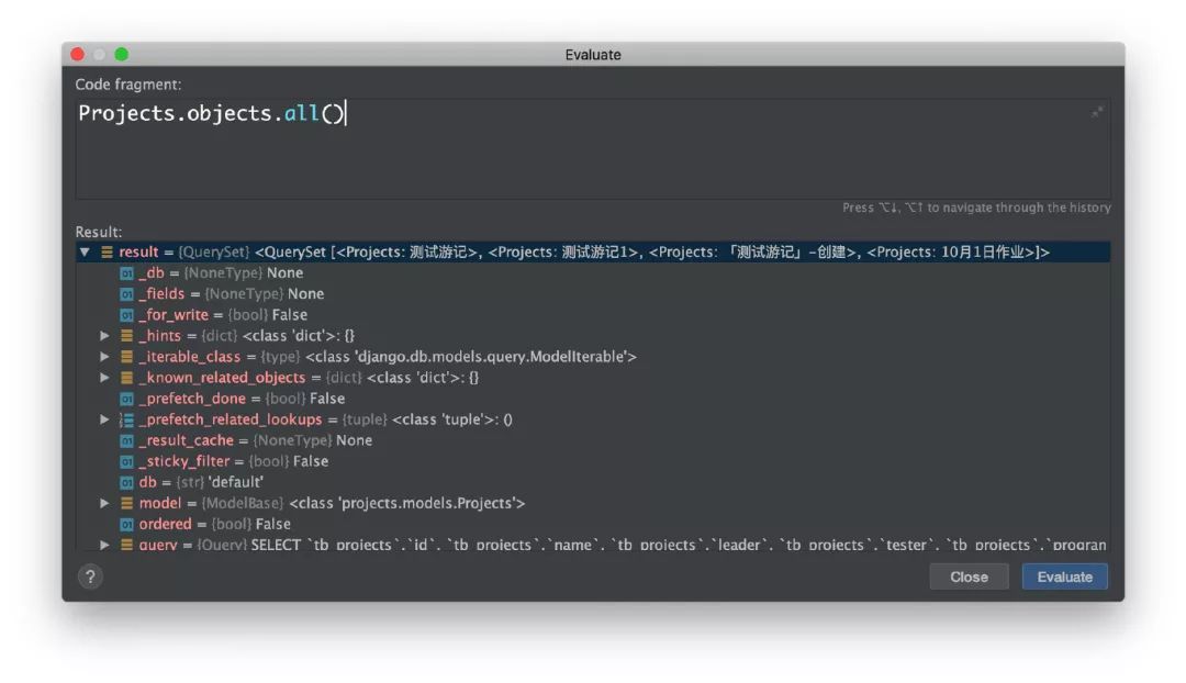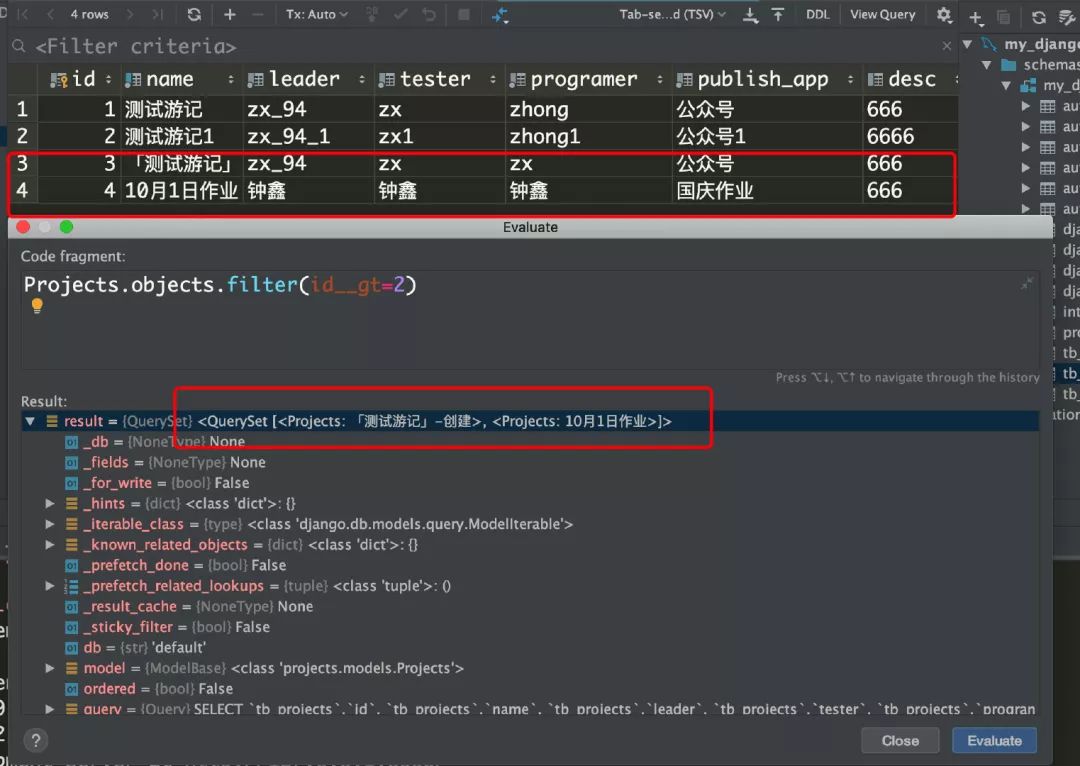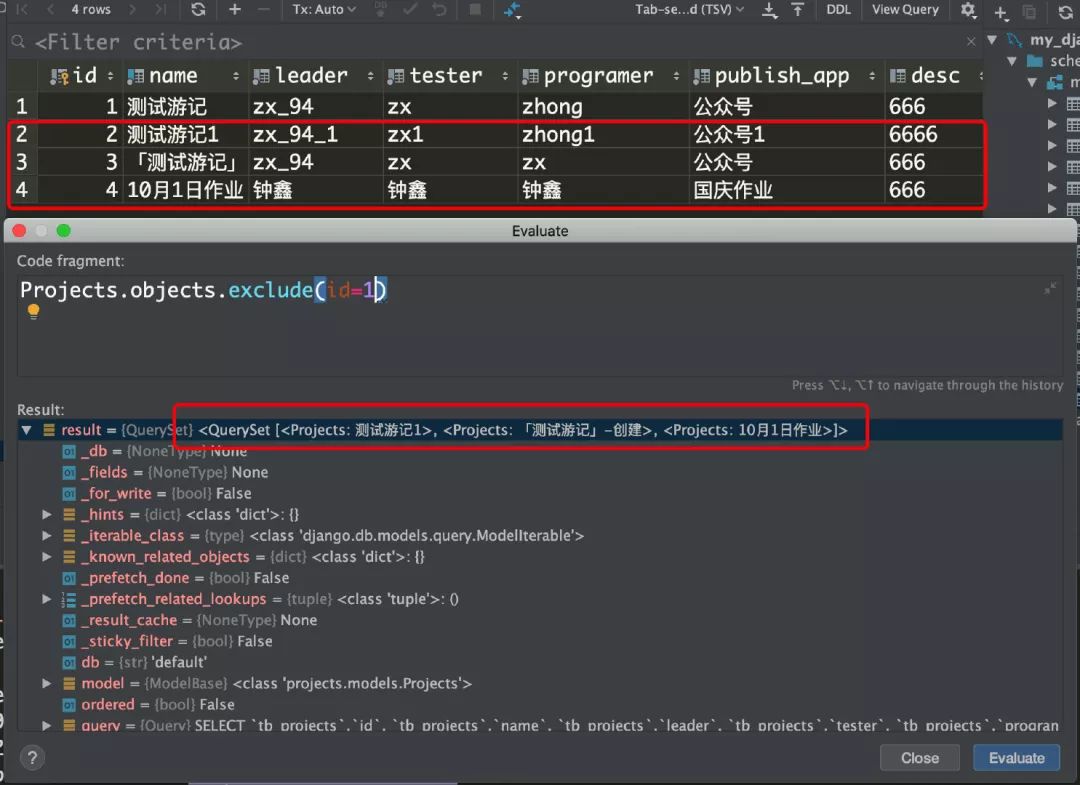 QuerySet查询集,就相当于一个列表(存放所有项目对象的列表)