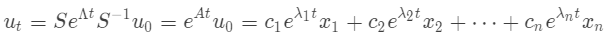 现在我们已经知道了通解的形式,以及特征值与通解性质之间的关联,我们就会考虑,如何将通解用