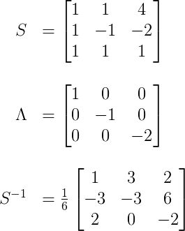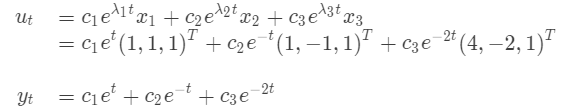 和求解差分方程的过程一样,我们首先求解特征值和特征向量:这里可以发现一个小技巧,因为