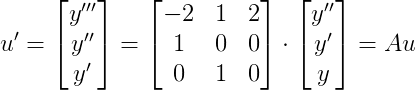 首先将三阶微分方程,转化为一阶微分方程的形式,我们可以令