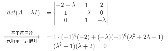 是奇异矩阵(也就是说行向量或者列向量存在线性关系),因此必然有一个特征值为 0 ,而根据特征值的和与矩阵的迹(对角线元素之和)相等,由此可以知道另一个特征值为 -3 。