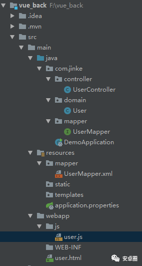 简单的教程就不说了,这里我搭建了一个springboot+vue的工程,通过axios动态请求获取数据然后显示在table里