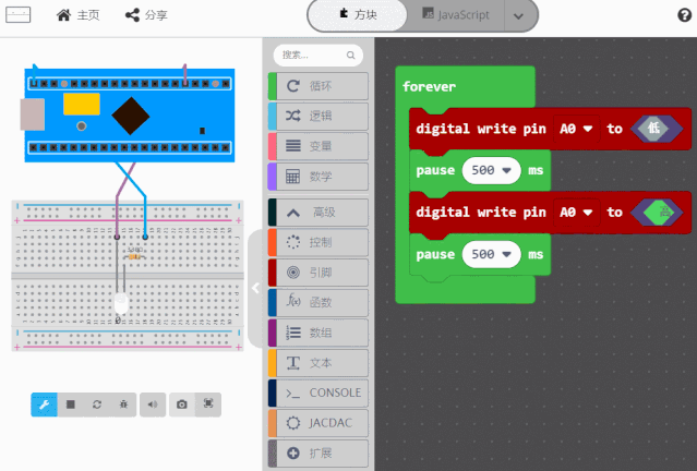 在MakeCode中编程时,开发板选择 Nucelo-F411re。