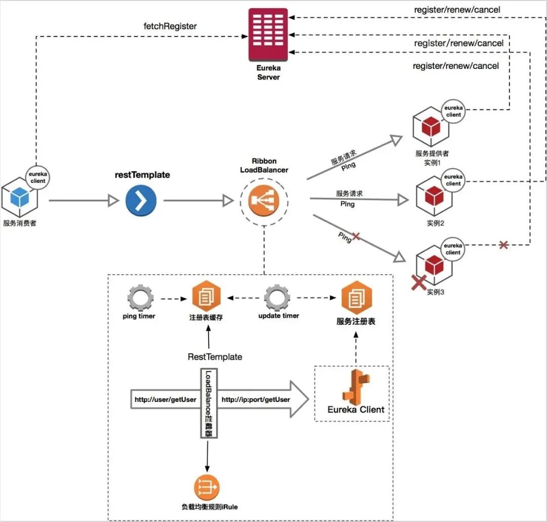 原理:主管服务注册与发现,也就是微服务的名称注册到Eureka,就可以通过Eureka找到微服务,而不需要修改服务调用的配置文件。