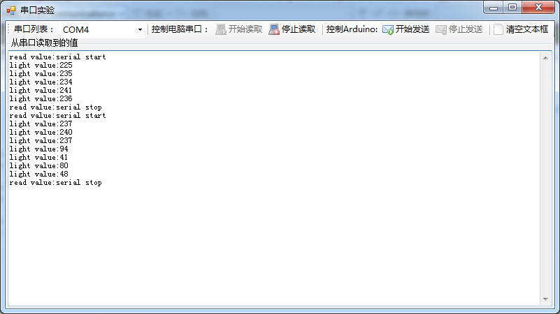 点击“停止读取”按钮,向Arduino发送“serial stop”命令,关闭串口并销毁实例。