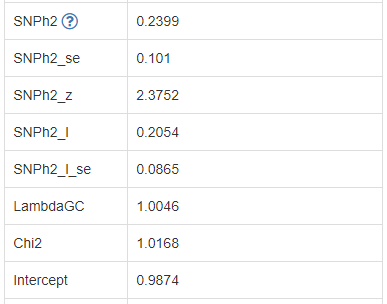 利用LDSC分析,评估了表型对应的SNP遗传力,结果示意如下