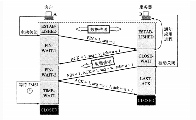 - 第二,防止“已失效的连接请求报文段”出现在本连接中。A在发送完最后一个ACK报文段后,再经过时间2MSL,就可以使本连接持续的时间内所产生的所有报文段都从网络中消失。这样就可以使下一个新的连接中不会出现这种旧的连接请求报文段。