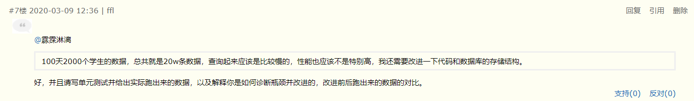 因为根据本人的以往经验,我觉得这种信息系统所消耗的时间主要在数据的遍历上,那么我就应该改进数据的存储形式,所以就把数据按周/月的形式编辑成表并存在数据库当中,查询的时候就只用查询相应时间的表,就可以节约很多的遍历时间。具体数据我就不放了,消耗的时间大概就是改进前遍历整张表(20w条数据),改进后只用遍历一张小的表。