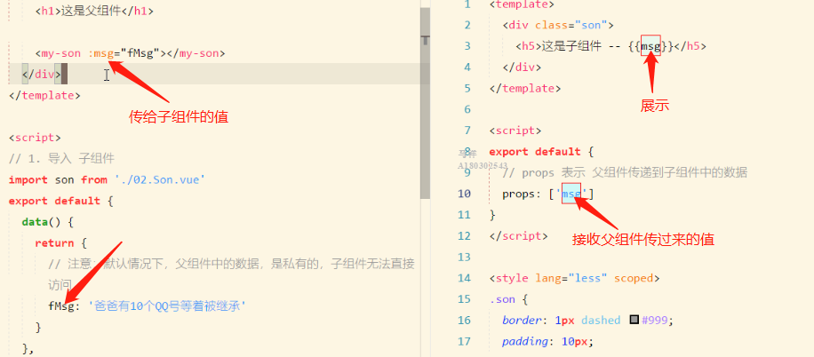 使用作用域:在父作用域中,通过定义 slot-scope=”slot”属性,接收并使用插槽数据为slot添加属性绑定,把插槽中需要渲染的数据传递给外界使用者