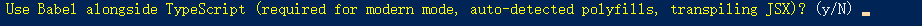 这个选项的意思是要不要使用 babel 工具自动为转换后的 TypeScript 代码注入 polyfiills 。如果实在搞不清楚具体是什么意思,可以先不用管,直接选择 Y ,进入下一步