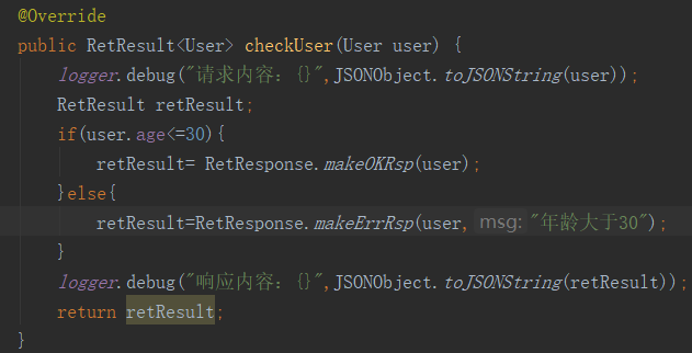 8 年龄大于30,结果:{"code":400,"msg":"年龄大于30","data":{"name":"hello","age":50}}