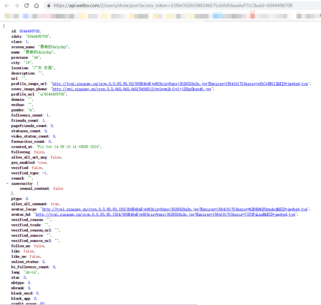 # 拿到access_token和uid就可以访问微博API用户(user/show)接口信息