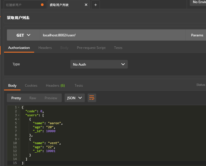 2.在routes新建users.js路由完成用户的增查改功能