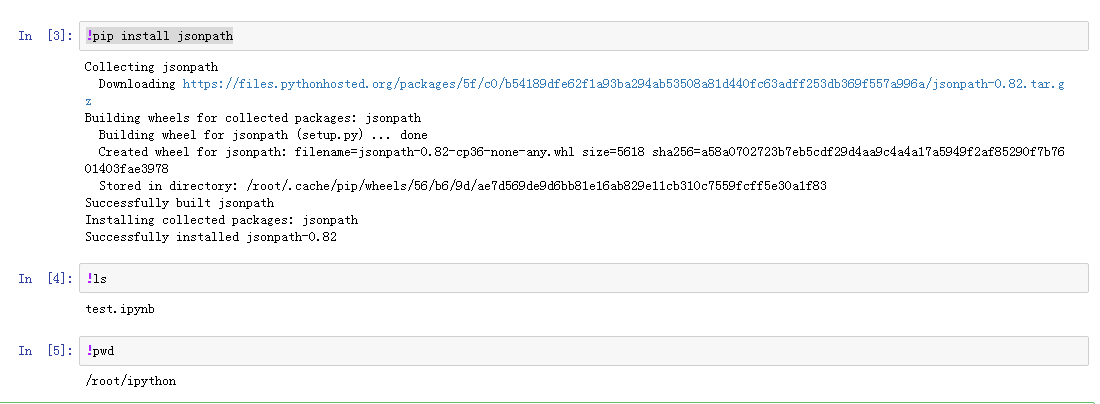 在jupyter界面直接安装第三方包或者执行命令行命令,记得加上感叹号,英文的